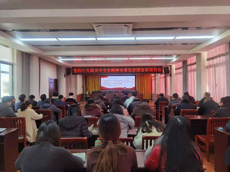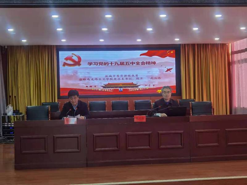 12月19日下午,市委宣讲团成员、EVO真人视讯公司党总支书记、经理高汝伟到响水县陈家港镇宣讲党的十九届五中全会精神。陈家港镇党委书记田大波主持宣讲报告会,陈家港镇机关全体工作人员及各村(居)党组织书记等参加宣讲报告会。