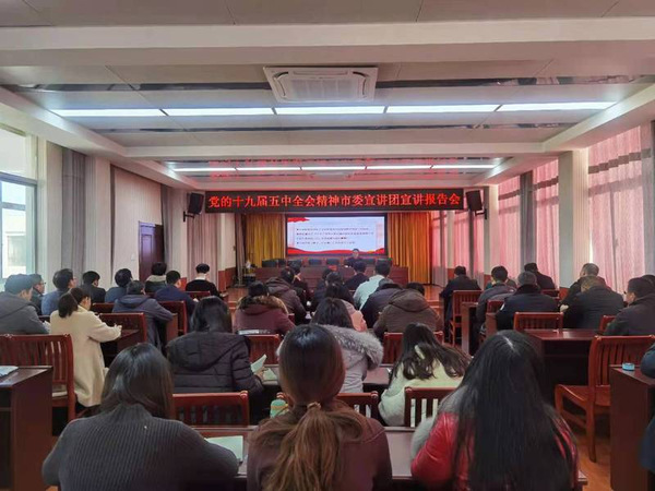 12月19日下午,市委宣讲团成员、公司公司党总支书记、经理高汝伟教授到响水县陈家港镇宣讲党的十九届五中全会精神。陈家港镇党委书记田大波主持宣讲报告会,陈家港镇机关全体工作人员及各村(居)党组织书记等参加宣讲报告会。