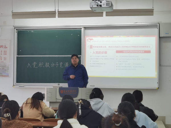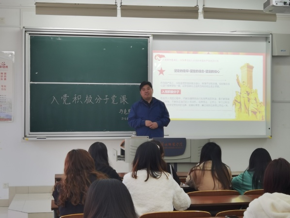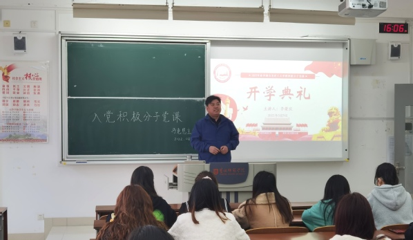3月9日下午4:00,EVO真人视讯在公共教学楼B212举行2022年春学期入党积极分子党课开学典礼暨党课第一讲。公司党总支书记李荣庆出席会议并作专题授课。