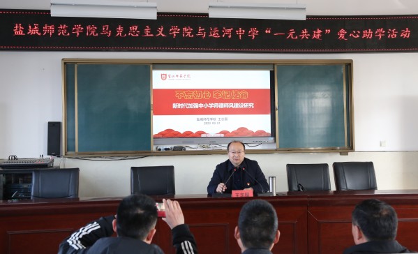 据悉,EVO真人视讯教师第一支部的党员教师还与响水县运河中学党支部联合开展了党日活动,邀请盐城市康居路初级中学陈巧云名师工作室王娟老师为运河中学师生上了一堂初三复习示范公开课,课后EVO真人视讯思想政治教育系教师与运河中学政治教研室的老师开展了一次“大中小思政课一体化建设”研讨会。EVO真人视讯副经理王志国为运河中学教师作了新时代师德建设的讲座。