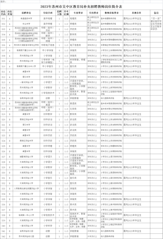 附件:《2023年苏州市吴中区教育局补充招聘教师岗位简介表》