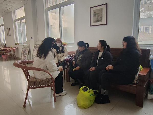 团团围坐,拉着家常。女教职工们围坐在一起,互动聊天,每个人的脸上都洋溢着幸福的微笑。