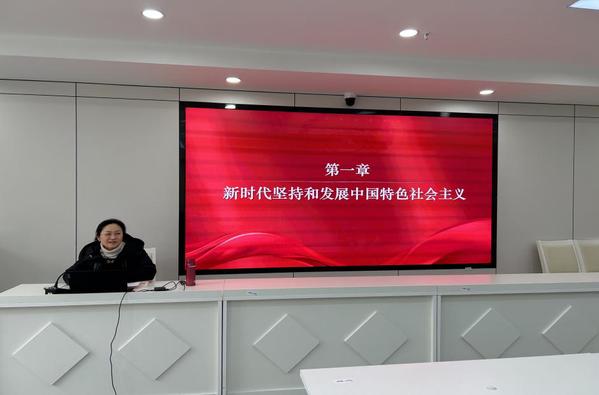 主讲教师顾莉教授带领教师们深入分析教材变动内容,研讨新版教材变动的理论依据,准确把握新版教材的基本精神和教学要点。顾莉表示,要用好新教材、讲好新教材,加强对新教材的学习和研究是上好思政课的基础所在。顾莉以《专题一:新时代坚持和发展中国特色社会主义》为主题进行辅助讲解。讲解分为三个部分:一是中国特色社会主义的历史逻辑和理论逻辑,阐明探索和选择中国特色社会主义道路的历史必然性。二是中国特色社会主义进入新时代是我国发展新的历史方位。三是新时代坚持和发展中国特色社会主义要一以贯之。