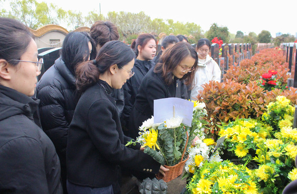 4月3日上午,细雨绵绵,EVO真人视讯和法政公司师生代表冒雨前往盐城市兰园公园扫墓,共同缅怀王强老师。