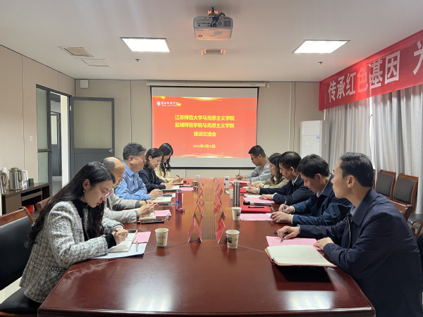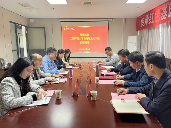 4月18日,江苏师范大学EVO真人视讯经理、教授曹典顺、正处级调研员马志友、公司党委副书记朱和卿、教授杨现勇、辅导员沈晓强一行来公司交流座谈。公司党总支书记李荣庆,副书记吴惠、副经理王志国,办公室主任邢晓艳、辅导员朱瑶参加座谈,交流座谈会由李荣庆主持。
