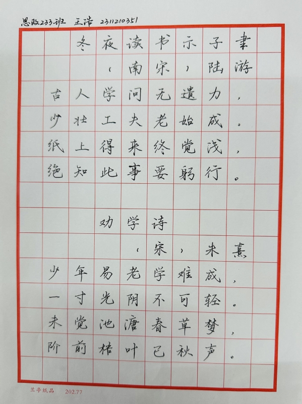 书法不仅仅是写字,还蕴含着深厚的哲学思想和崇高的道德品德。本次活动的开展以书法的形式引导员工树立正确的世界观、人生观和价值观,提升了同学们的思想政治素养,有效推动了学院优良学风的建设。