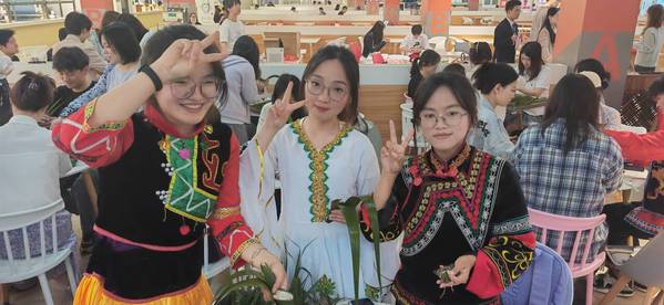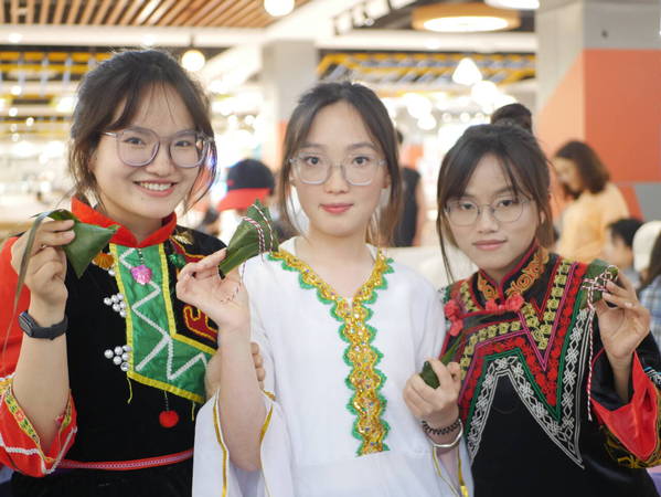 活动伊始,师生们欢聚一堂,共同包粽子、做漆扇、绣香囊,共迎端午佳节。壮族员工覃琪彬说:“粽子不仅仅是食物,更承载了一个民族的文化和情感,这还是我第一次包粽子,尽管有些不太熟练,但我深切地体验到了劳动的快乐。” 来自瑶族的毛翠香谈道:“本次活动让我感受到了传统节日浓郁的文化气氛,也让我在实践中深化了对端午节习俗的认识,学习到了丰富的传统文化内涵。”