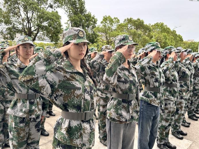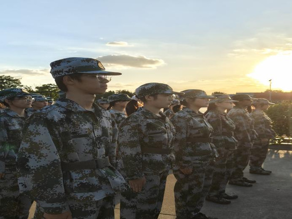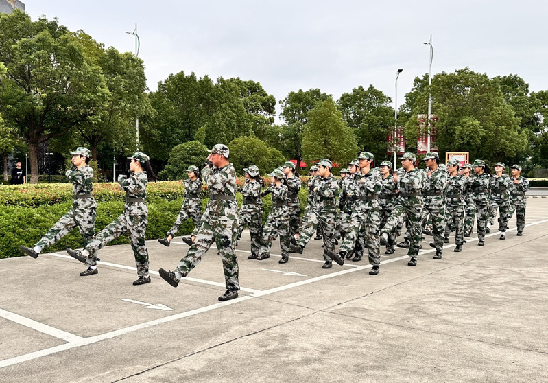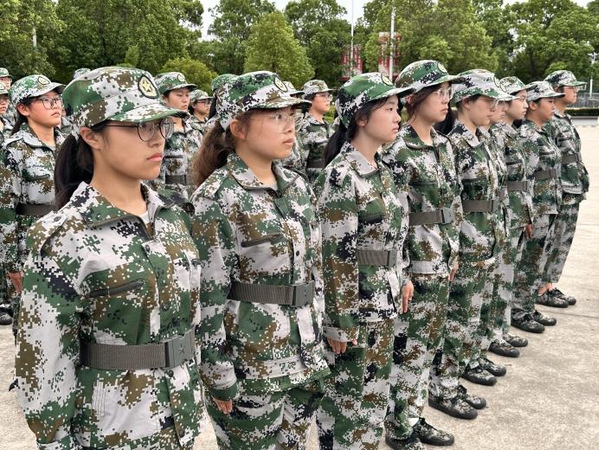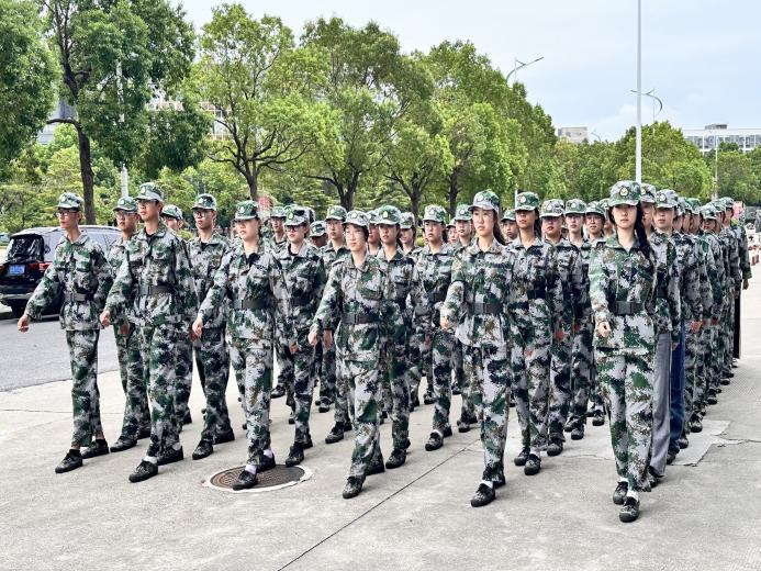 九月秋风轻拂校园,新生们穿着迷彩军训服,在斑驳的树影下,正绘制着一幅充满活力的青春图卷。