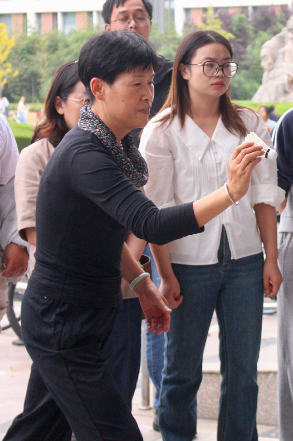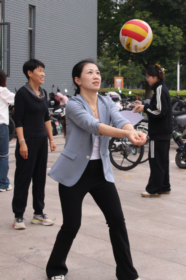 在投球入篓项目中,参赛老师们纷纷展示了自己的投球技巧,羽毛球在空中划过一道道优美的弧线,准确地落入篓中。