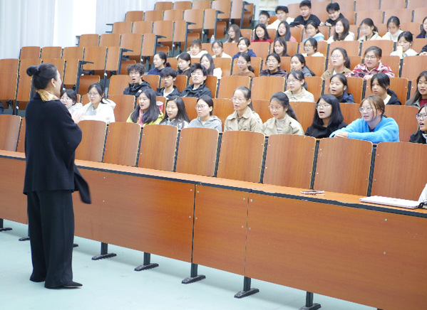 随后,吴林香带领同学们学唱红歌《我的祖国》,在悠扬的红歌旋律下,同学们通过亲身参与感受到红色音乐中存在的真挚情感和坚定信念。最后,围绕蔡元培先生提出的美育价值主张,吴林香对同学们提出殷切期望,希望大家深刻认识到新时代美育的价值功能,更多地走进美育课堂,提升美育素养,从而促进自身全面发展。