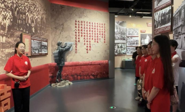暑假期间,盐师马院“追寻红色足迹,赋能大思政课建设”社会实践团走进盐城新四军纪念馆、泰兴新四军黄桥战役纪念馆等8个场馆,开展红色场馆研学活动。成员们实地学习,深入大思政课育人基地,跟随讲解员参观红色纪念馆,系统追溯党的光辉历程,深刻领悟党的红色底蕴,进一步增强对红色文化的认同。通过众多抗战实物以及复刻的系列革命斗争场景,实践团成员们重温了烽火岁月,感受到了抗日战争时期战士们英勇顽强、坚毅不屈的革命精神。实践团成员丁书威表示:“通过实地参观学习,我们能够将课堂所学知识与实际历史故事相结合,更直观地理解新四军革命先烈的奋斗历程和伟大精神,对于思想政治教育专业的师范生而言,这是宝贵的教育资源,我们有责任将这份红色基因传承下去,为弘扬新四军革命精神贡献青春力量。”
