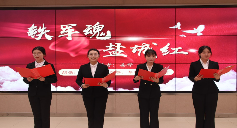 活动现场,老员工还以铿锵之声朗诵《铁军魂,盐城红》,用饱含深情的语言将盐城这片红色热土上的英雄故事娓娓道来。他们以历史与时代的共振,赓续盐城红色文化,带领全场观众穿越历史长河,重温革命年代的壮烈豪情,激扬新时代奋进力量。