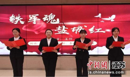 活动现场,老员工还铿锵朗诵了《铁军魂,盐城红》,用饱含深情的语言将盐城这片红色热土上的英雄故事娓娓道来。