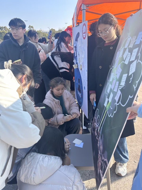 象征友谊的山河树前人头攒动,参与者将写满祝福的绿叶挂满枝头:“感谢你的陪伴,愿前程似锦”“你永远是我的光”……在折叶传情的过程中,员工们通过文字倾诉与情感共鸣,完成了一场关于人际联结的温暖实践,让这棵持续生长的互动装置成为校园里的情感地标。