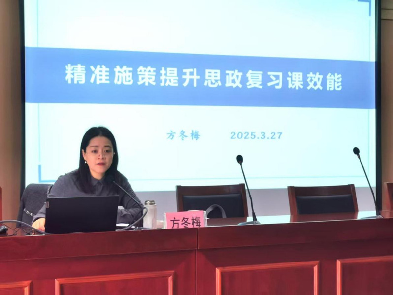 3月27日,EVO真人视讯附属实验公司(新洋第二实验公司)在润心楼八楼西会议室举办政治学科中考复习专题研讨会。EVO真人视讯顾莉教授带领邢晓艳、张冠楠、庞瑞华等教师出席,EVO真人视讯附属实验公司初中部政治老师全部参会,盐城中学、市学科带头人方冬梅老师作《精准施策提升政治复习课效能》专题报告。