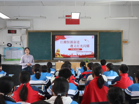 宣讲团成员陈欣妍、冯乐怡带领初一的同学们走进遵义,重温那段动人心魄的历史,弘扬遵义会议的红色基因,从伟大精神谱系中汲取奋进力量,引导运河中学学子深植家国情怀、厚植廉洁基因,展现新时代青年奋楫笃行的担当作为。