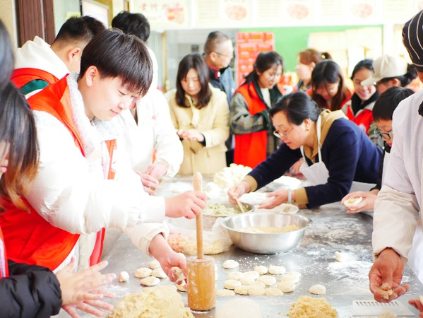 “黄桥烧饼黄又黄哎,黄黄烧饼慰劳忙,烧饼要用热火烤哎,军队要靠老百姓帮……”这是由革命烈士李增援创作的一首脍炙人口的革命民歌《黄桥烧饼歌》。非遗传承人现场演示黄桥烧饼制作技艺时特别强调:“这鲜香酥脆的黄桥烧饼,见证着当年黄桥战役军民鱼水情的史诗。”师生们亲手揉面、包酥,在实践中重温那份历史。如今,黄桥烧饼已从战火中的“精神食粮”演变为中华民族共同体意识的具象化载体,其典故承载着历史记忆、文化传承与民族复兴的深层内涵。