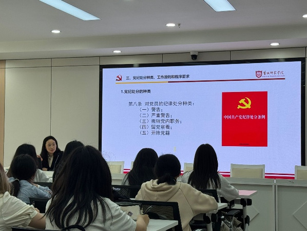 在培训过程中,吴惠指出共产党员肩负着特殊使命,必须将自觉遵守党的纪律作为行为准则,时刻严于律己,在思想和行动上与党保持高度一致。随后,吴惠以《中国共产党纪律处分条例》的修订历程为线索,详细解读了每一次修订背后的时代背景。通过回顾这一历程,入党积极分子们深入领会了党的纪律的深刻内涵,更加坚定了严守党纪、为党和人民事业不懈奋斗的决心。