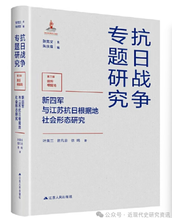 《新四军与江苏抗日根据地社会形态研究》一书,是公司教师曾凡云与南京邮电大学叶美兰教授、徐鸣老师合作完成,由江苏人民出版社出版发行。该书入选南京大学荣誉资深教授张宪文和江南大学历史研究院经理朱庆葆主编的“抗日战争专题研究”。