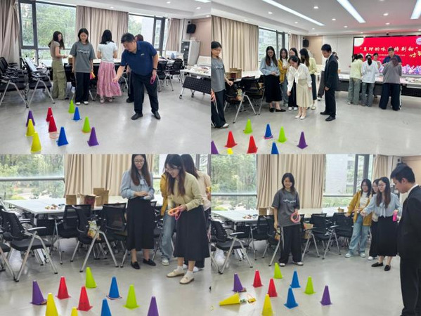 套圈游戏环节中,同学们依次在指定线外投掷套圈,现场欢呼声、喝彩声此起彼伏。来自回族的买瑶在套中礼品后开心地表示:“刚才大家为我加油的时候,心里特别温暖,感觉就像和家人一起过节一样。”